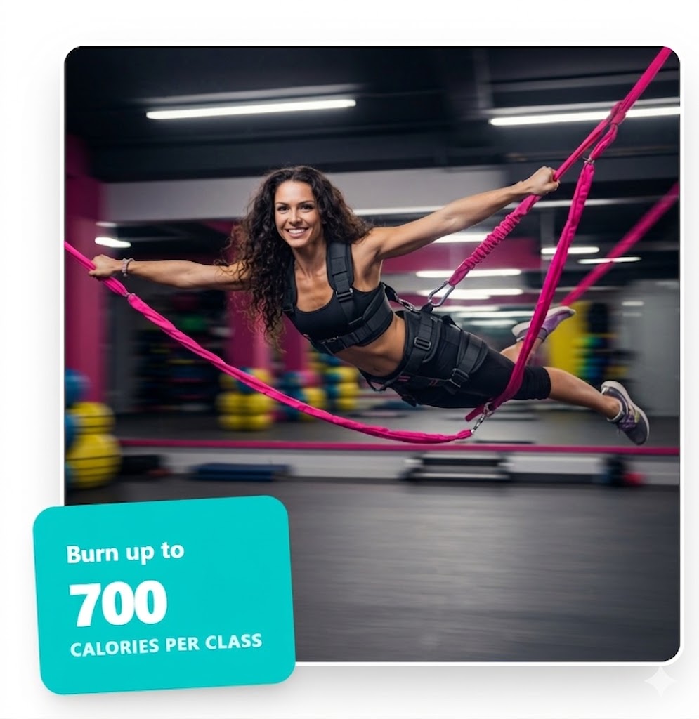 Bungee fitness is a revolutionary workout that combines cardio, resistance training, and acrobatics. Attached to a customized bungee cord, you'll experience a feeling of weightlessness that takes the pressure off your joints while delivering an incredible full-body burn.